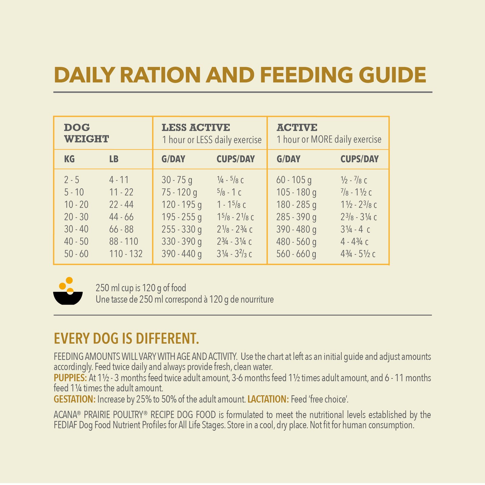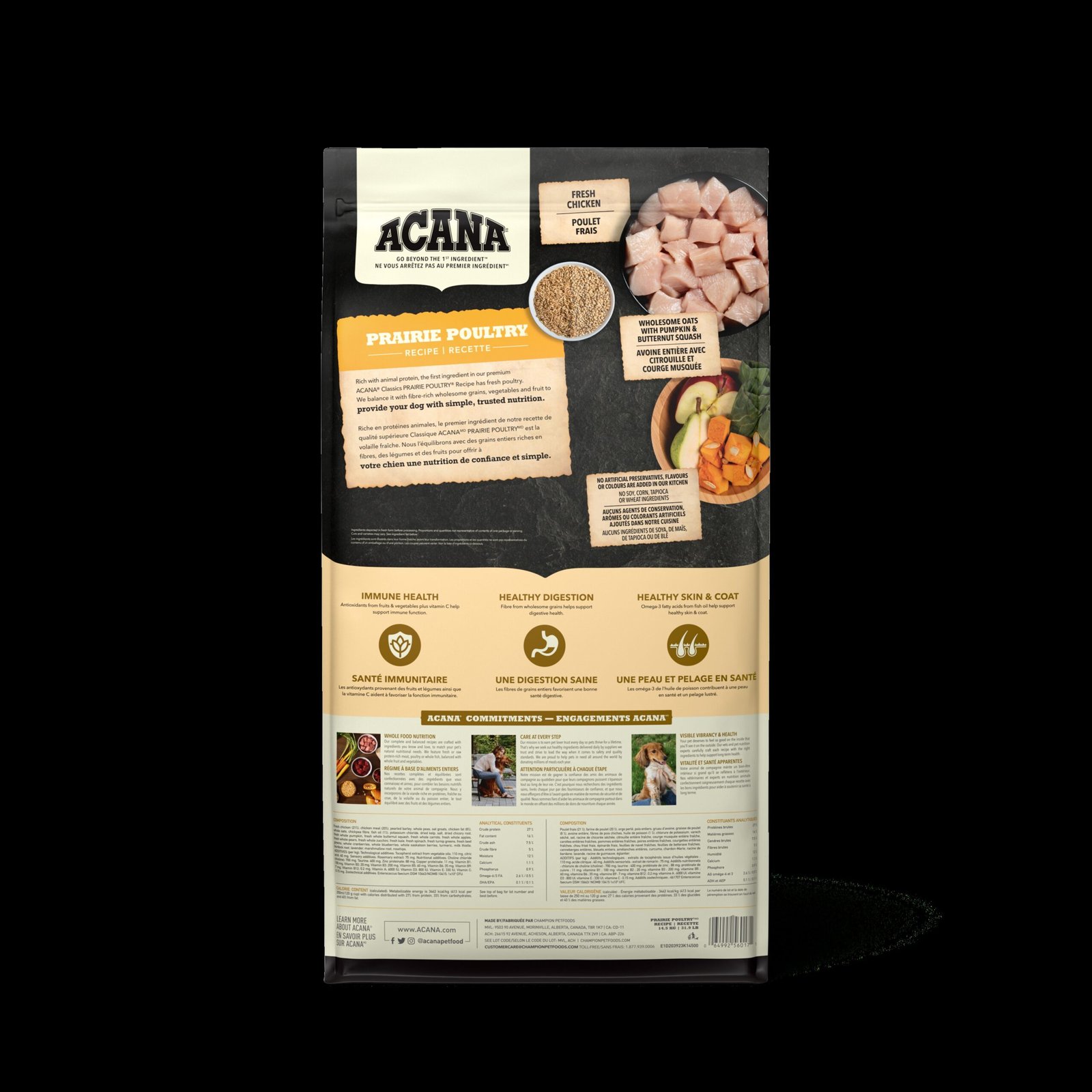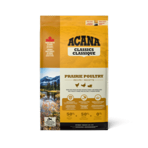 ACANA® Classics recipes are thoughtfully crafted from start to finish with delicious, quality ingredients, and the first ingredient always has fresh or raw animal ingredients. With a balanced 50/50 split between rich poultry ingredients and nutritious fruit, grains and vegetables, ACANA Classics Prairie Poultry recipe provides your dog with a filling and nutritious meal crafted from simple, wholesome ingredients. It also includes nutrient-rich ingredients that support three key health benefits, including immune function, healthy digestion, and healthy skin and coat. Feed your dog premium nutrition at a classic price with ACANA Classics Prairie Poultry recipe * Approximate and derived from the unprocessed state of the ingredients. **We also add essential vitamins and minerals, natural preservatives, probiotics and antioxidants