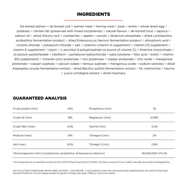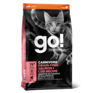 Your feline friend deserves top quality nutrition. That’s why Go! Solutions Carnivore Salmon + Cod Grain Free Recipe for cats is proudly made in Ontario, Canada by expert pet nutritionists. Crafted with real premium-quality fish and nutrient-rich fruits & veggies, this protein-rich food supports strong, lean muscles and good digestion.