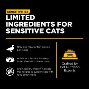 Duck, duck broth, tapioca, dried egg whites, pumpkin, cranberries, flaxseed, cassia gum, guar gum, tricalcium phosphate, sodium tripolyphosphate, salmon oil, potassium chloride, choline chloride, vitamins (vitamin A supplement, vitamin D3 supplement, vitamin E supplement, niacin, thiamine mononitrate, d-calcium pantothenate, riboflavin, pyridoxine hydrochloride, folic acid, biotin, vitamin B12 supplement), minerals (zinc proteinate, iron proteinate, copper proteinate, manganese proteinate, calcium iodate, sodium selenite), taurine, salt, magnesium sulphate. Crude protein (min) 7.5%