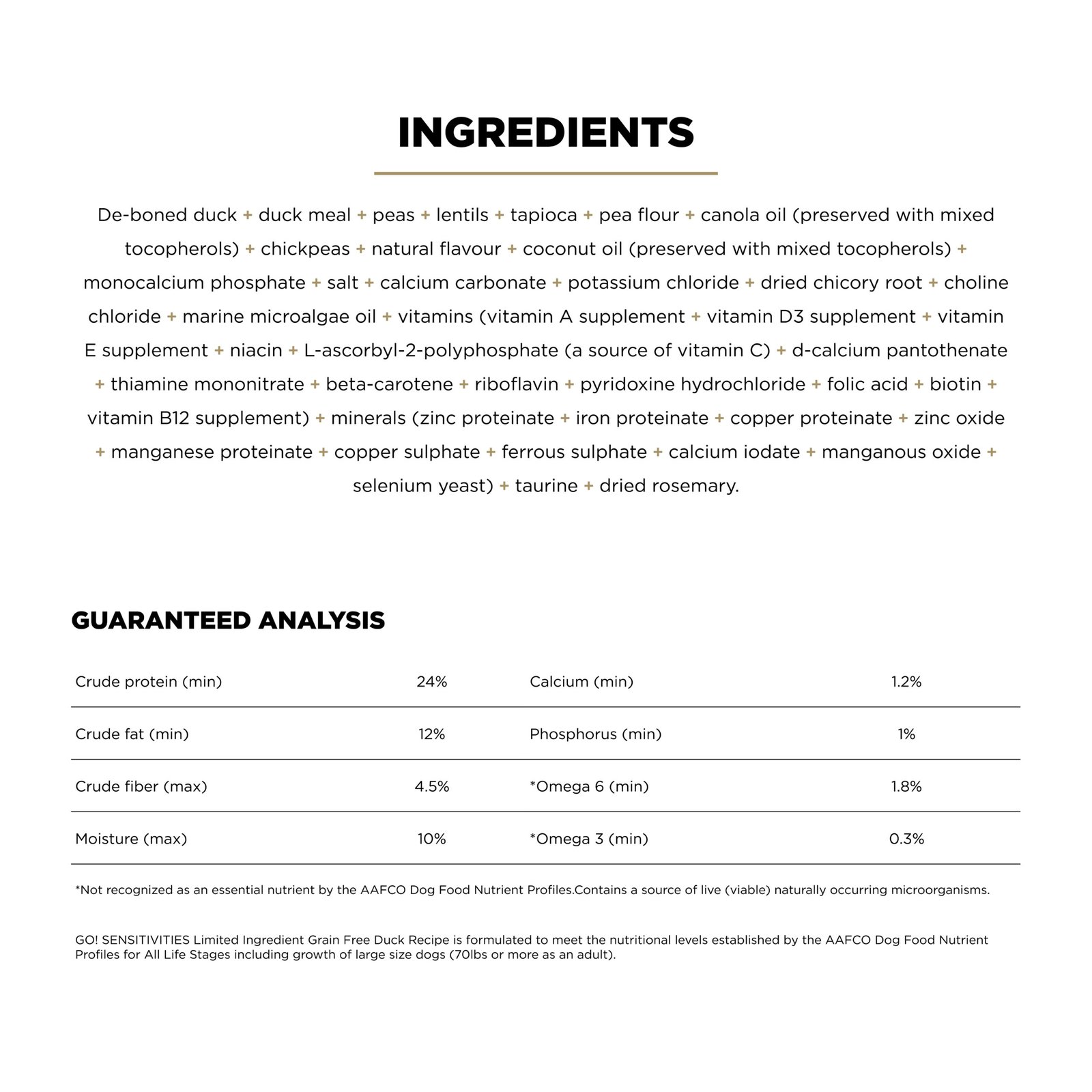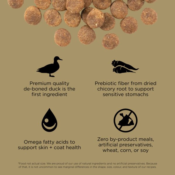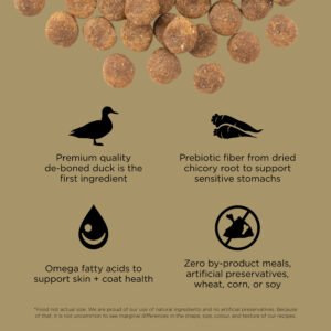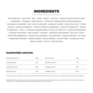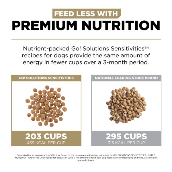 Looking for a dog food that supports food allergies and also tastes great? Go! Solutions Sensitivities Limited Ingredient Grain Free Duck recipe for dogs is a delicious food made with premium quality duck as the single-source animal ingredient. Using as few additional ingredients as possible, this recipe is free from common food allergens, making it a great option for sensitive dogs. Made by pet nutrition experts in Ontario, Canada with only premium ingredients, you will love the quality and your dog will love the taste.