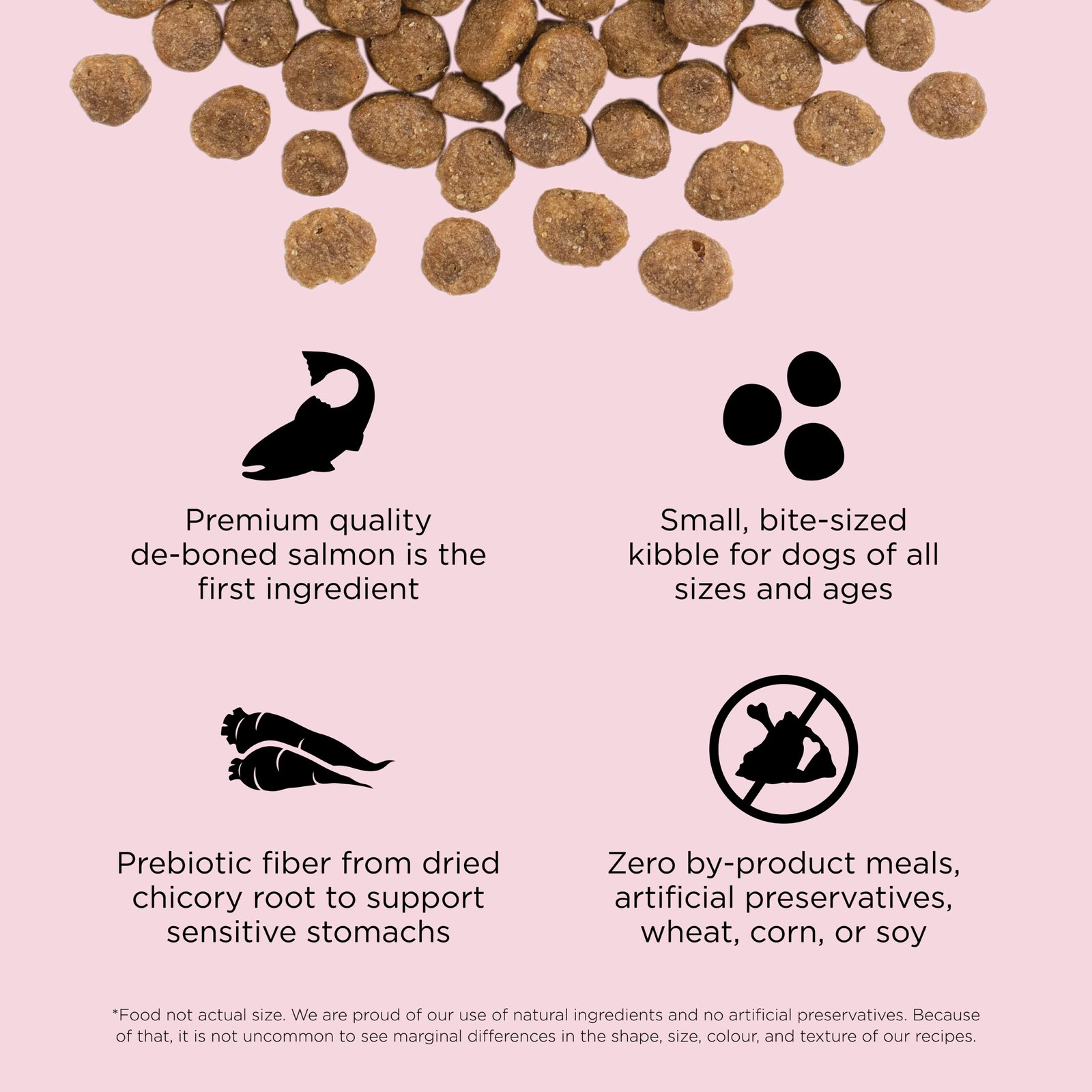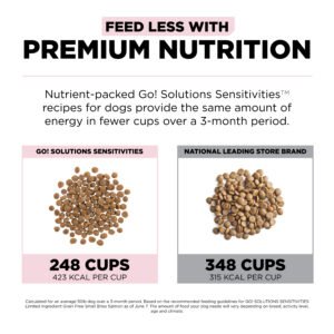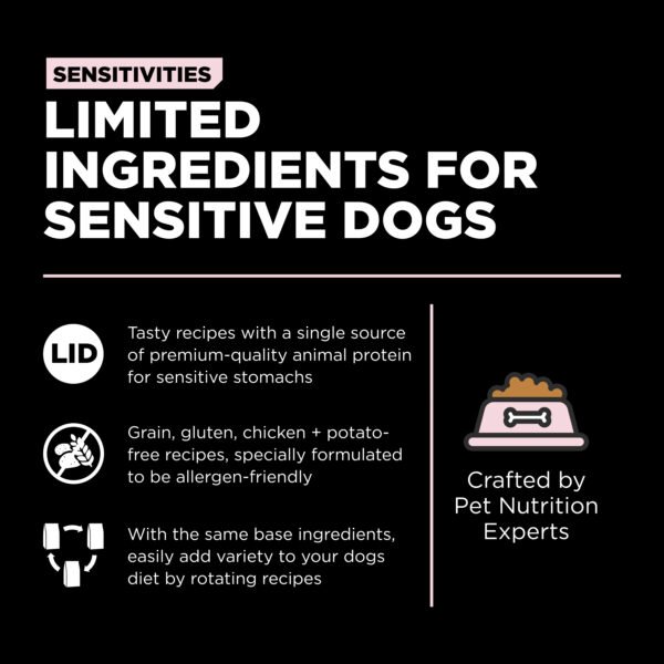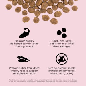 Go! Solutions Sensitivities Limited Ingredient Grain-Free Small Bites Salmon Recipe for dogs is the ultimate choice for small dogs with food allergies and sensitivities. Made with love in Ontario, Canada, this recipe is features a single source of animal protein and limited additional ingredients to limit your dog’s exposure to potential food allergens. Plus, its small kibble size is ideal for little mouths.