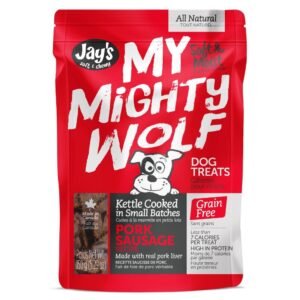 Treat your furry friend to the ultimate snack with Jay’s My Mighty Wolf Pork Sausage. Crafted with care, these kettle-cooked dog treats are made in small batches to ensure premium quality and irresistible taste. Featuring real pork liver as the main ingredient, these treats are not only delicious but packed with protein to keep your pup energized and healthy.