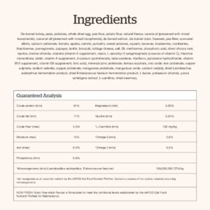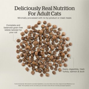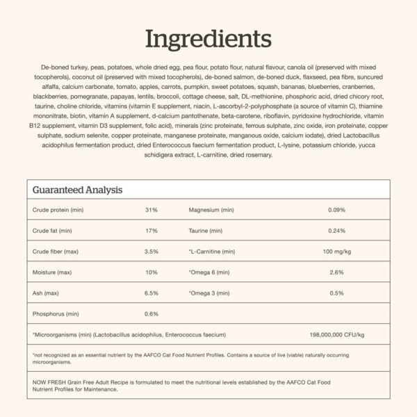 Feeding your cat something exceptional means choosing a meal crafted with thoughtfulness and care – exactly like our Now Fresh Grain-Free dry cat food for adult cats. It’s made with high-quality proteins like fresh turkey, salmon, and duck to help your friendly feline in maintaining strong muscles. The recipe is thoughtfully crafted with anti-oxidant rich cranberries which support urinary tract health as well as fibre-rich pumpkin and sweet potato to help with good digestion and healthy stools. It’s our way of showing we care—through thoughtful nutrition that’s both sophisticated and honestly good for your cat.