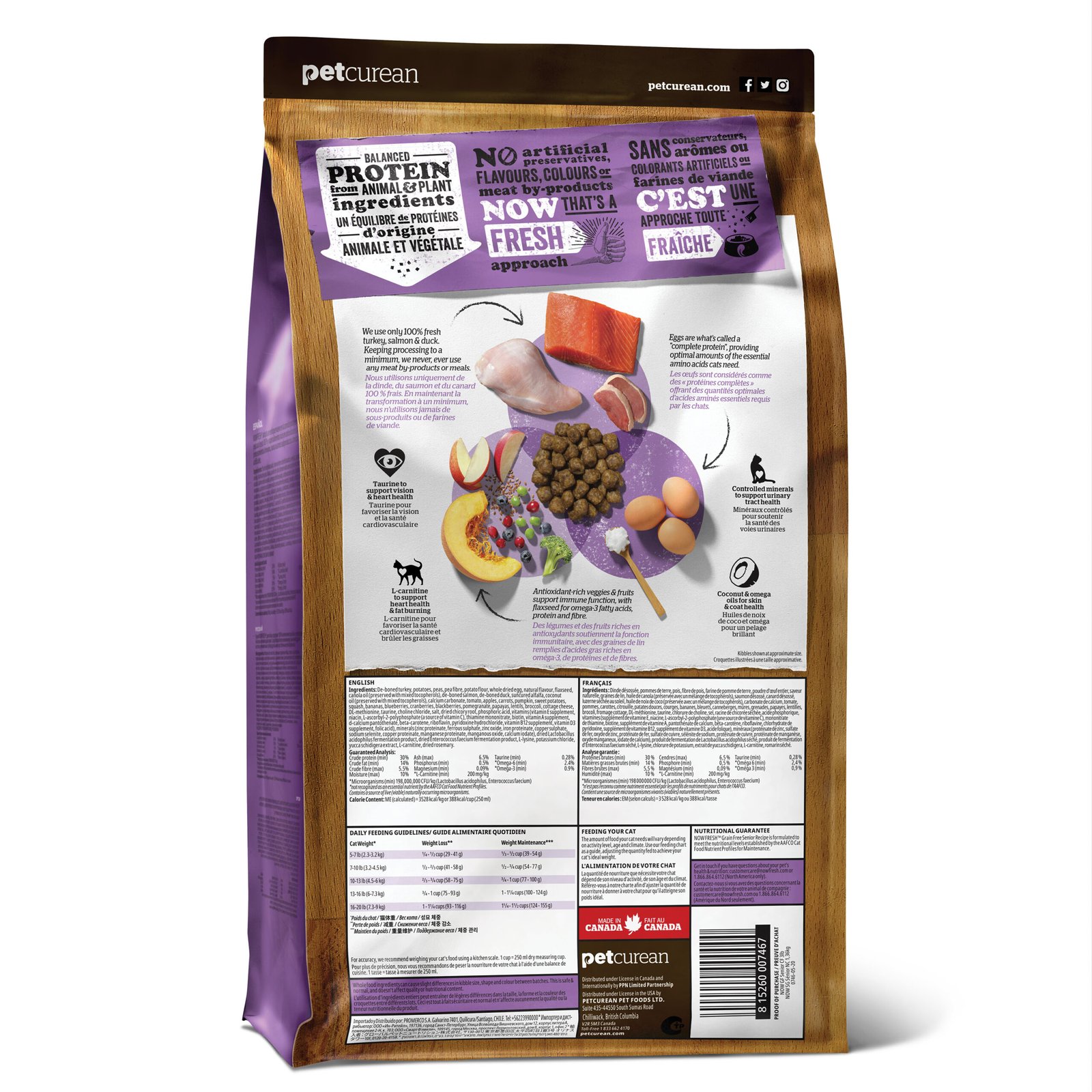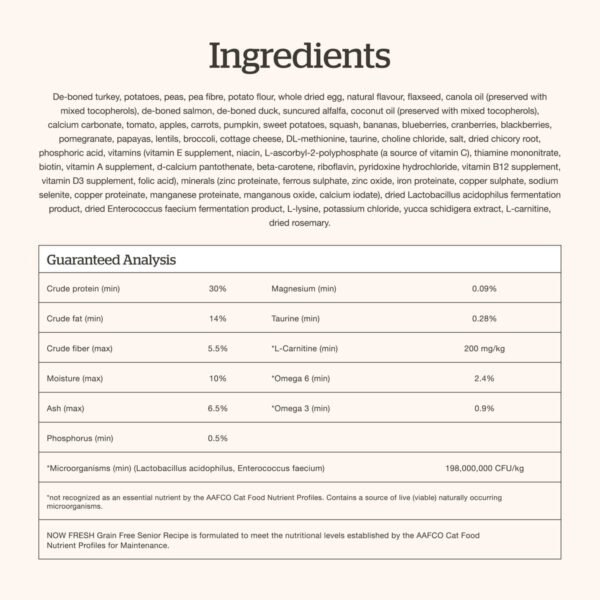 As our feline friends grow older, their dietary needs become more specific. Our Now Fresh Grain-Free Dry Cat Food for senior cats is specially formulated to cater to these needs with precision and care. The recipe features an ideal balance of fresh deboned turkey, salmon, and duck, providing easily digestible proteins that help maintain muscle strength. Essential nutrients like vitamin A from carrots support eye health, while essential fatty acids from coconut oil help in maintaining healthy digestion. Antioxidant-rich cranberries support urinary tract health, making every meal incredibly beneficial for maintaining overall health and vitality.
