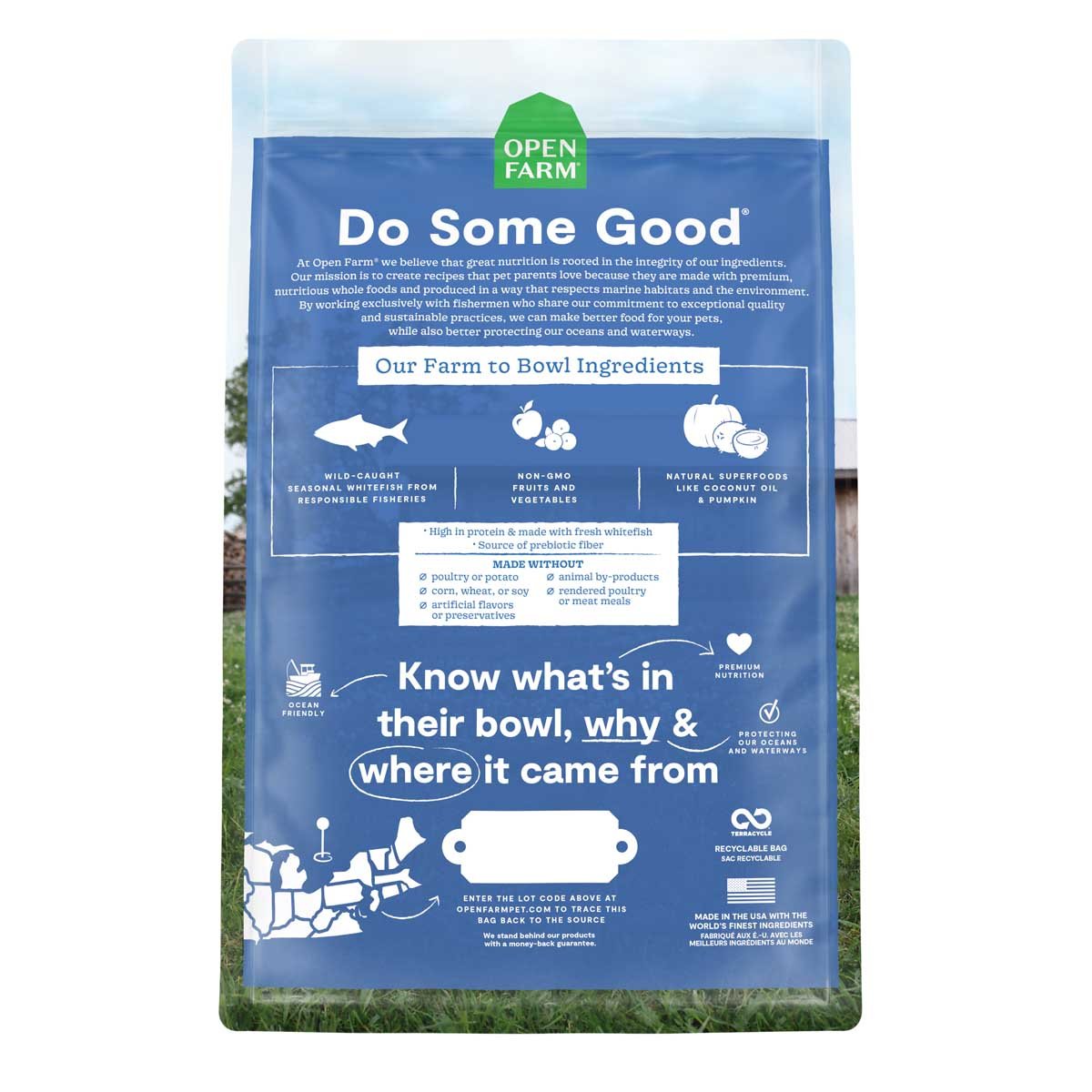 This high-protein kibble helps support healthy skin & coat and is a terrific source of Omega 3 fatty acids and DHA, thanks to a mix of Ocean Wise recommended wild-caught whitefish paired with non-GMO greens and superfoods.