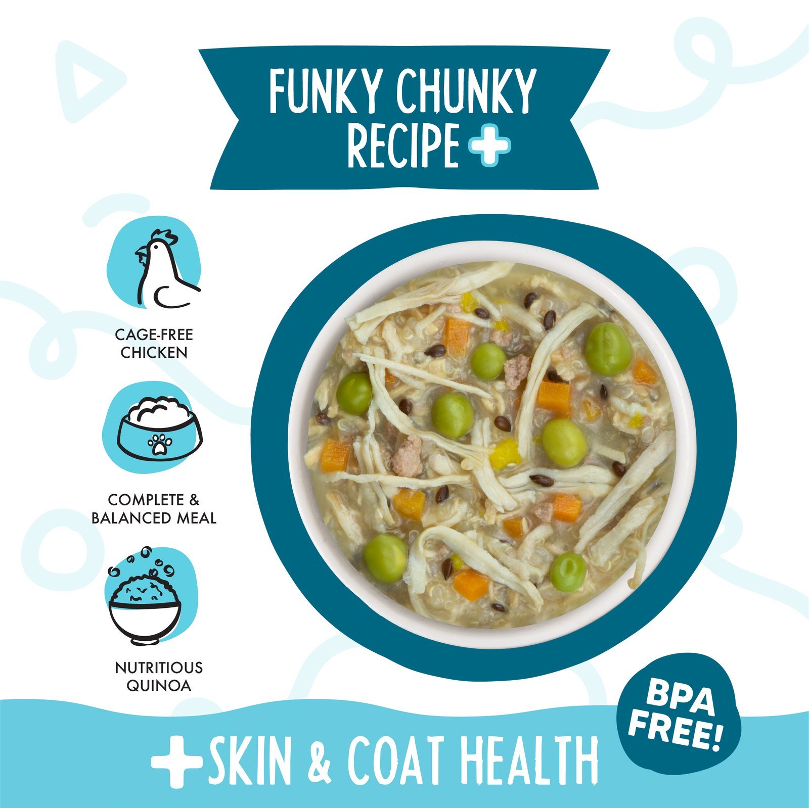 • Boosts skin & coat health with quinoa, flaxseed, and coconut oil.