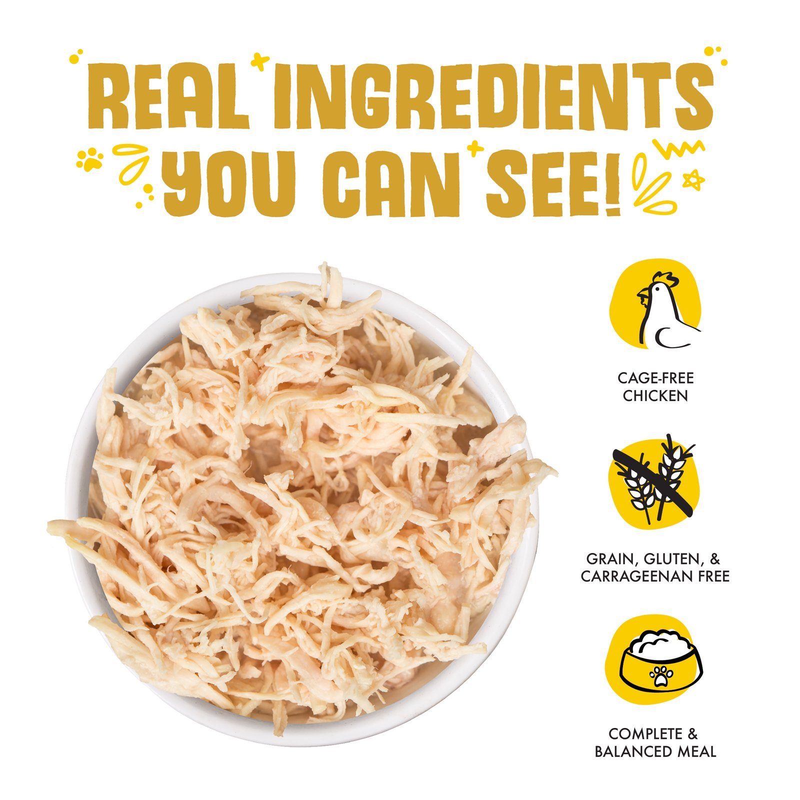 Every bowl is a paw-lickin’ delight with boneless, skinless white breast meat chicken in a savory gravy. Made from seriously good ingredients you can see, our classic recipes are crafted to please your obligate carnivore at every meal.